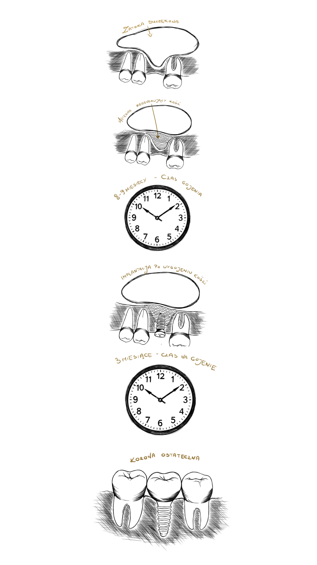 • Przestrzeń wypełnia się materiałem, który z czasem zamieni się w naturalną kość.